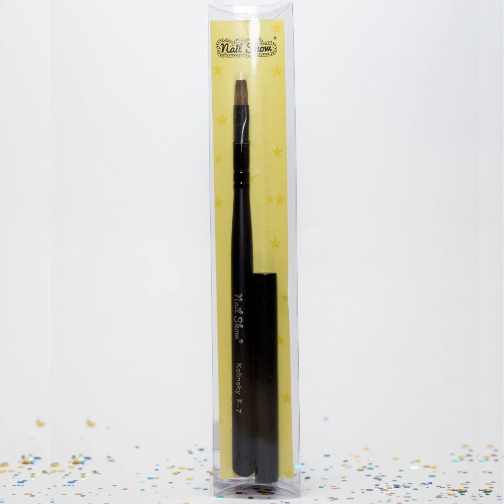Pincel chato Pelo natural Kolinsky #7 ideal para esculpir cualquier tipo de gel. Punta cuadrada para mejor definición en líneas de sonrisa y estructuras.