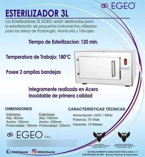 La estufa 3L EGEO está diseñada para la esterilización de pequeños instrumentos utilizados en Podología, Manicuría y Tatuajes.