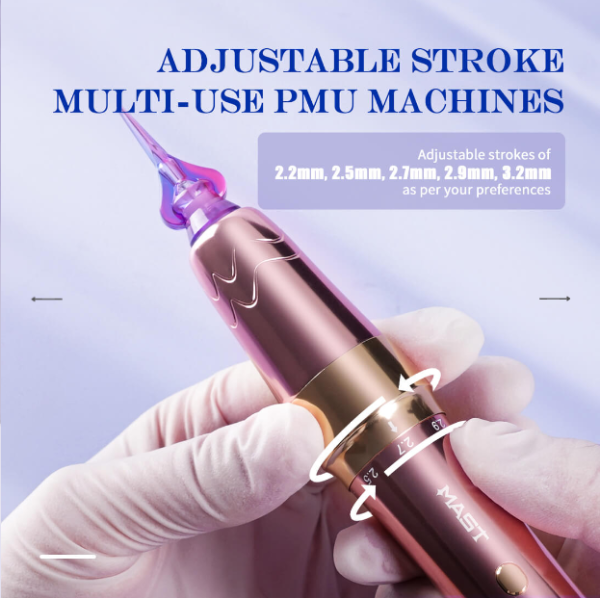Trazos ajustables: longitudes de trazo variables (2,2/2,5/2,7/2,9/3,2 mm) para diversas necesidades de PMU, desde labios delicados hasta cejas naturales y pequeños tatuajes.