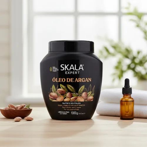 PRODUCTO: Máscara Reparadora Para Cabellos Secos Y Opacos Skala Máscara Brillo Increíble Óleo De Argán ayuda a promover una reparación profunda.